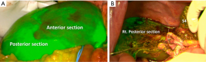 - Inoue Y, Arita J, Sakamoto T, et al. Anatomical liver resections guided by 3-dimensional parenchymal staining using fusion indocyanine green fluorescence imaging. Ann Surg 2015;262:105-11. [Crossref] [PubMed]
